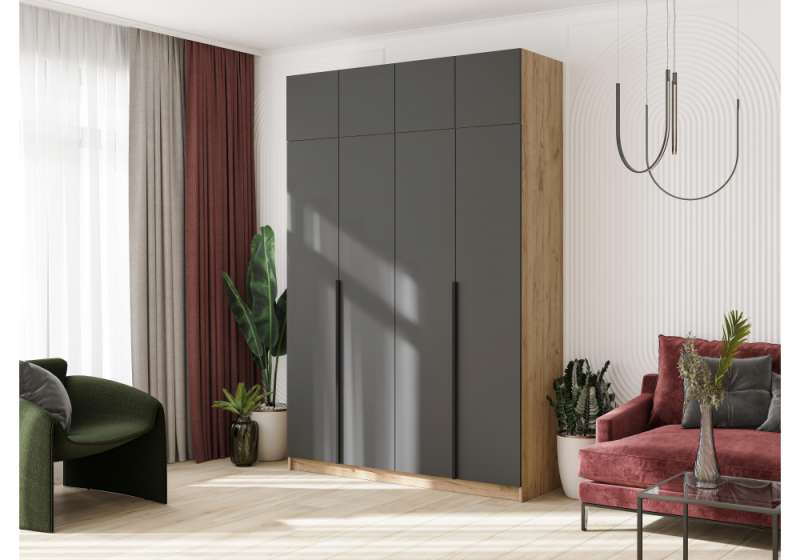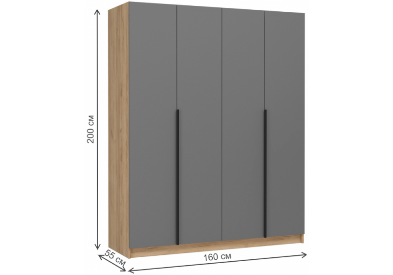 Шкаф Широн 1600 графит серый / дуб крафт золото (160x55x200).